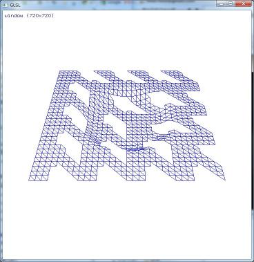 元の三角形はx-z平面上にあり,高さ方向(法線方向)はy軸と平行としている. SetVertex関数内のgl_FrontColorの行をコメントアウトしなければ新しい頂点の頂点色が線型補間で決定されるが, 生成できるポリゴン数は42に制限される. シェーダのビルドと呼び出し†CPU側でもテッセレーションのコードを実装して,CPUである程度分割後,さらにGPUで分割して, ディスプレースメントマッピングをしている. CPU側のテッセレーションのコードは以下. /*!