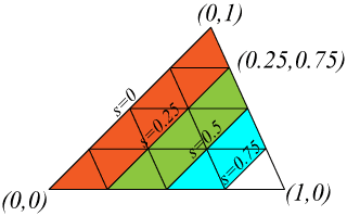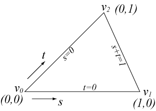 // v0を(0,0),v1を(1.0),v2を(0,1)として三角形を(s,t)でパラメータ化