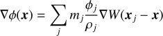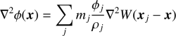 ここで,Nは近傍パーティクルの集合,mはパーティクル質量,