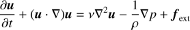支配方程式である非圧縮のナビエ・ストークス方程式を以下に示す.